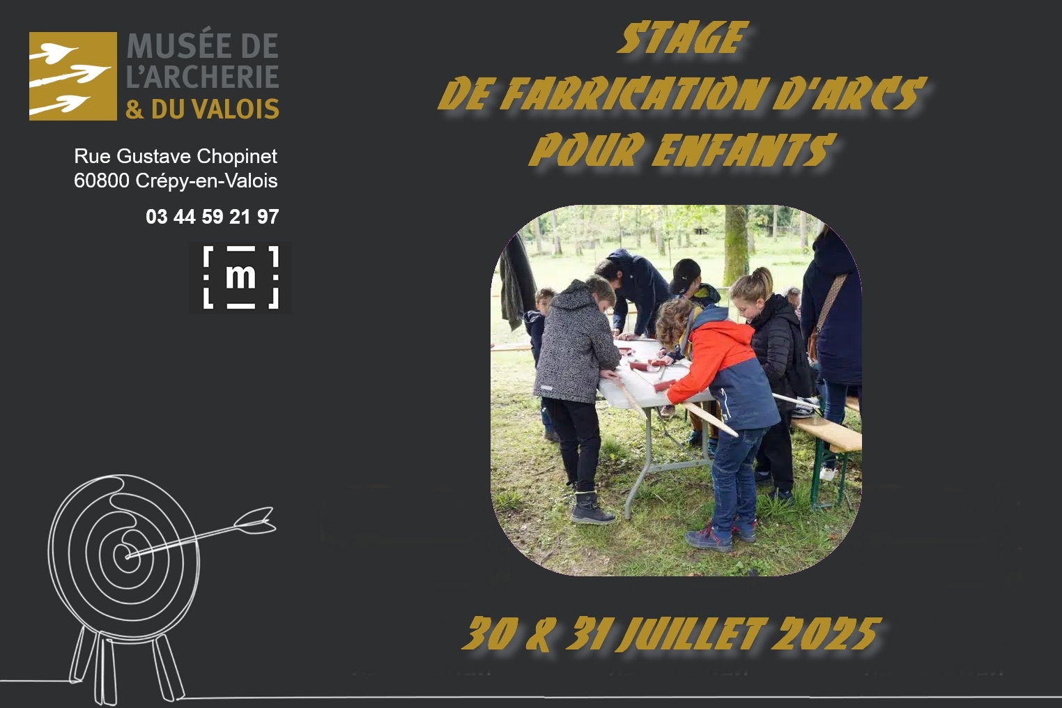 Le Musée de l'Archerie et du Valois propose aux enfants de 6 à 12 ans de fabriquer leur arc avec Laurent Messiasse de LM Nature & Bois. Lors de ce stage de 2 heures, ils pourront fabriquer leur arc, personnaliser leurs flèches et bien sûr tester leur création !
