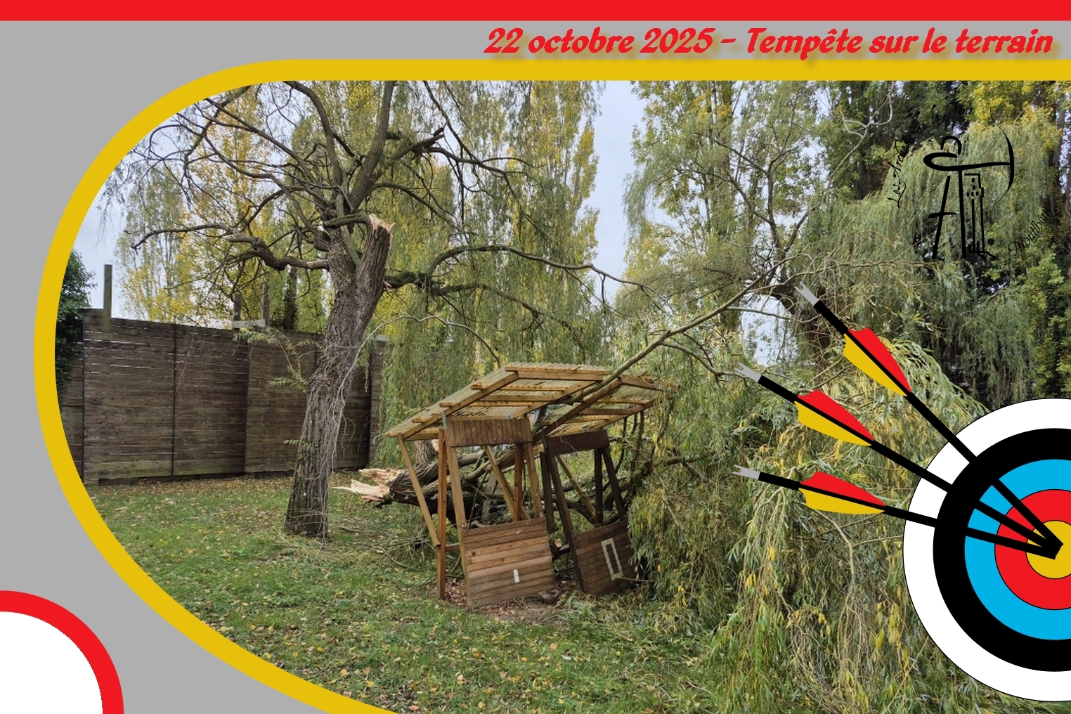 La tempête a eu comme conséquence la chute d'une énorme branche sur la cible des 40 mètres.