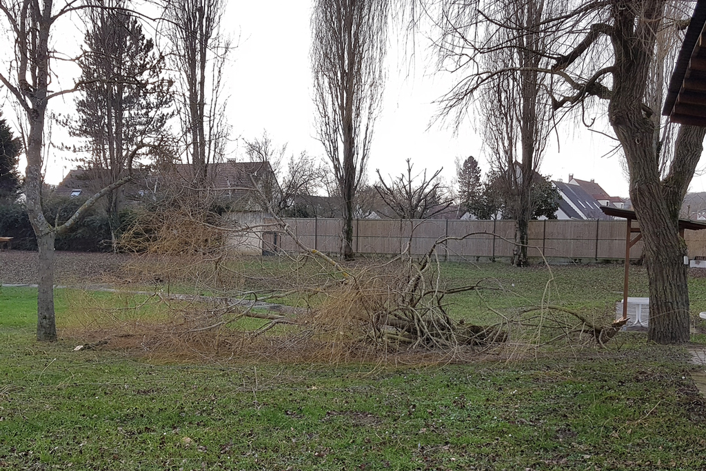 Lors de son passage Eleanor a fait tomber plusieurs grosses branches sur notre terrain extérieur le rendant impraticable.