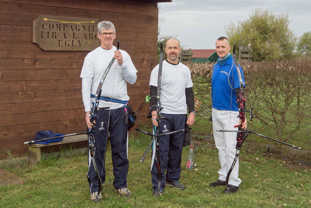 Jean V. et Gilles B., accompagnés de Fabrice P., ont participé ce samedi 7 avil 2018 au championnat de l'Essonne de tir au beursault au jardin d'arc de la compagnie d'Egly.