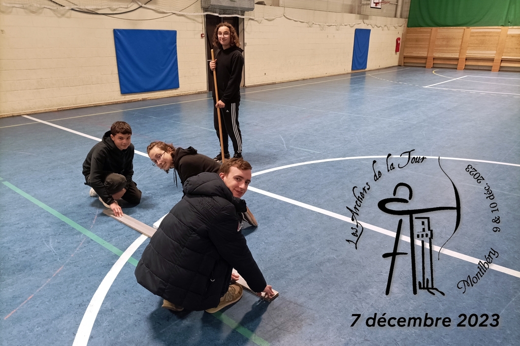 Ce jeudi 7 décembre 2023 nos jeunes archers ont apporté leur concours à la préparation de notre concours de Tir à 18 m & de Para-Tir à l'Arc à 18 m des 9 & 10 décembre 2023 en traçant l'ensemble des lignes du pas de tir.