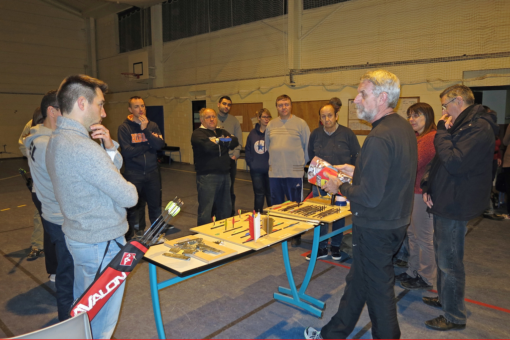 Ce lundi 9 février 2015, à l'occasion du cours des archers débutants de l'année adultes, était organisée une séance d'intiation au montage des flèches avec démonstration et mise en application.
