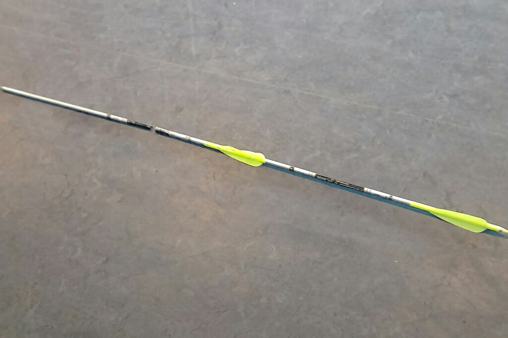 Les flèches sont alignées, encastrées fortement ; malheureusement la flèche réceptrice n'a pas survévu à l'évènement.