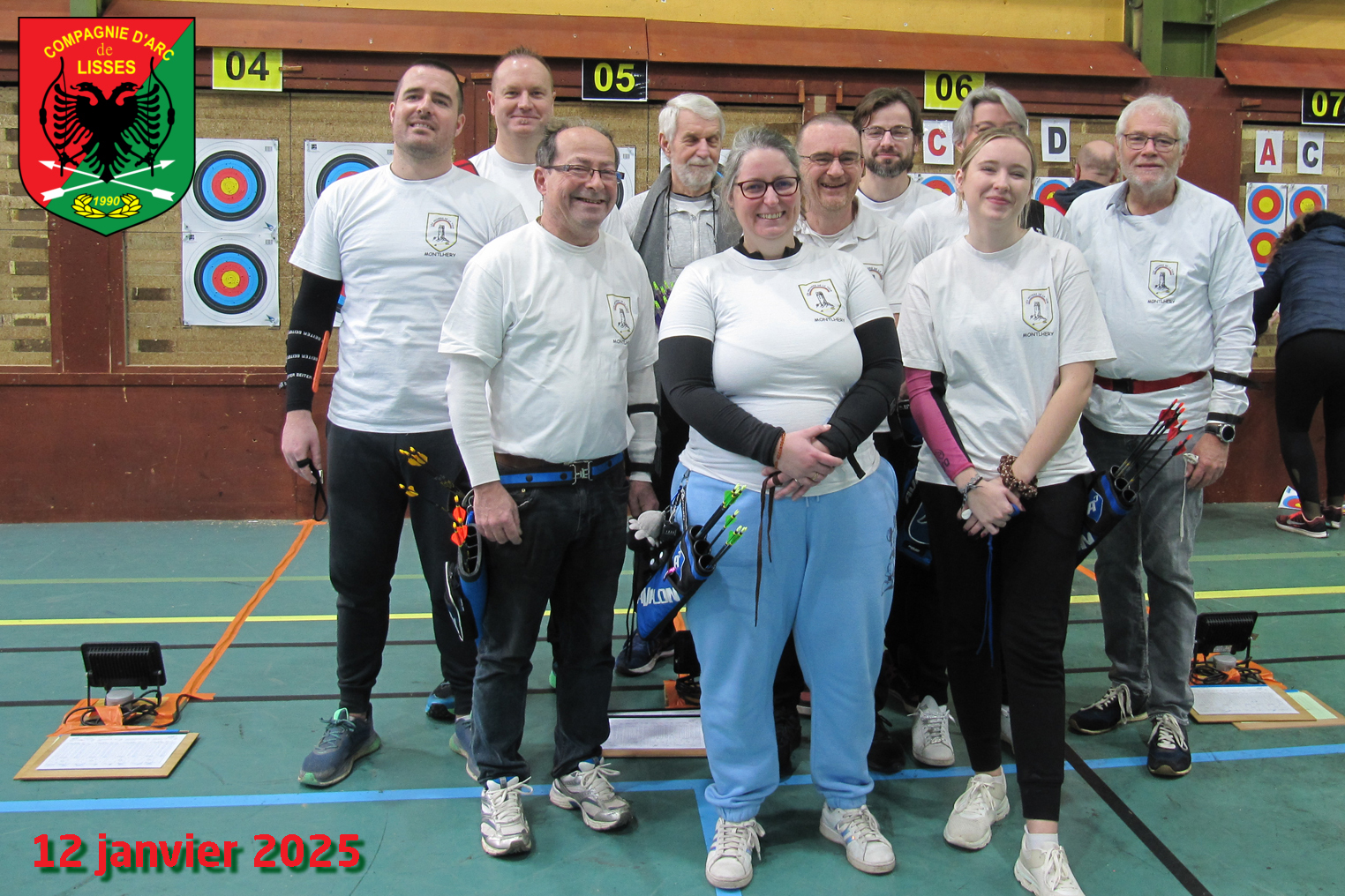 Ce dimanche 12 janvier 2025, Anne, Alban, Candice, Christophe, Eric et sa fille, Guillaume, Jacques, Mathieu, Stéphanie et Philippe se sont retrouvés à Lisses pour participer au concours salle 2 x 18 m de la compagnie d'Arc de Lisses.