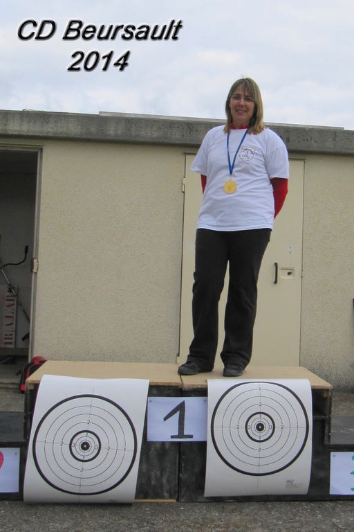 A l'issue de deux jours de compétition dans trois jeux d'arc de l'Essonne, Laurence Z. s'est hissée sur la plus haute marche du podium et est ainsi devenue championne départementale Beursault de l'Essonne 2014.