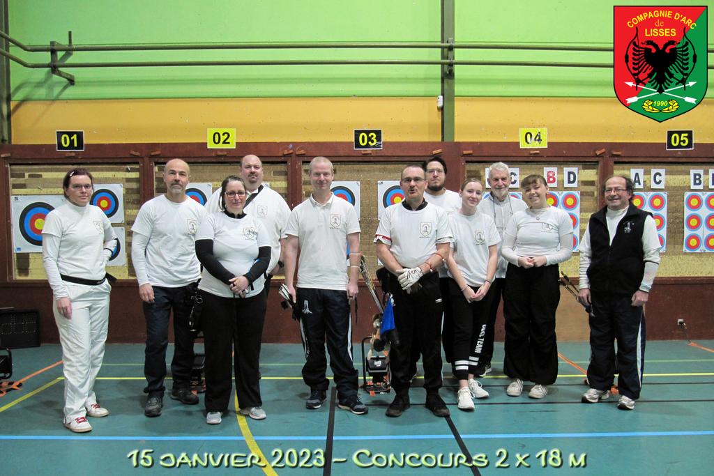 Ce dimanche 15 janvier 2023, la Compagnie d'Arc de Lisses a accueilli à l'occasion de son concours de tir en salle une des traditionnelles « Sortie club » des Archers de la Tour.