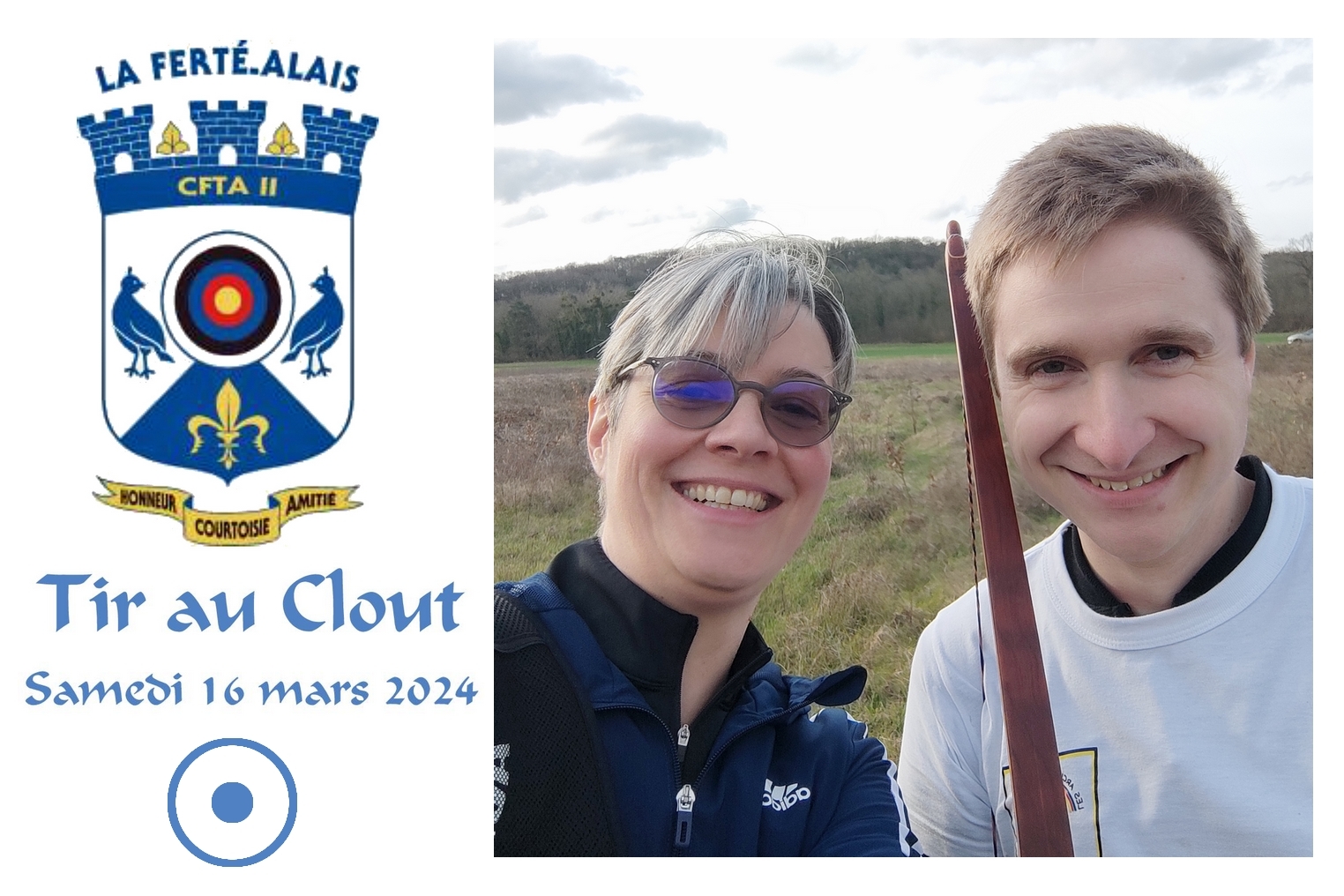 Anne et Quentin ont participé, le samedi 16 mars 2024, à un tir traditionnel organisé par la Compagnie fertoise de tir à l'Arc II à Vayres-sur-Essonne, le « Tir au Clout ».