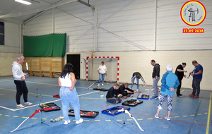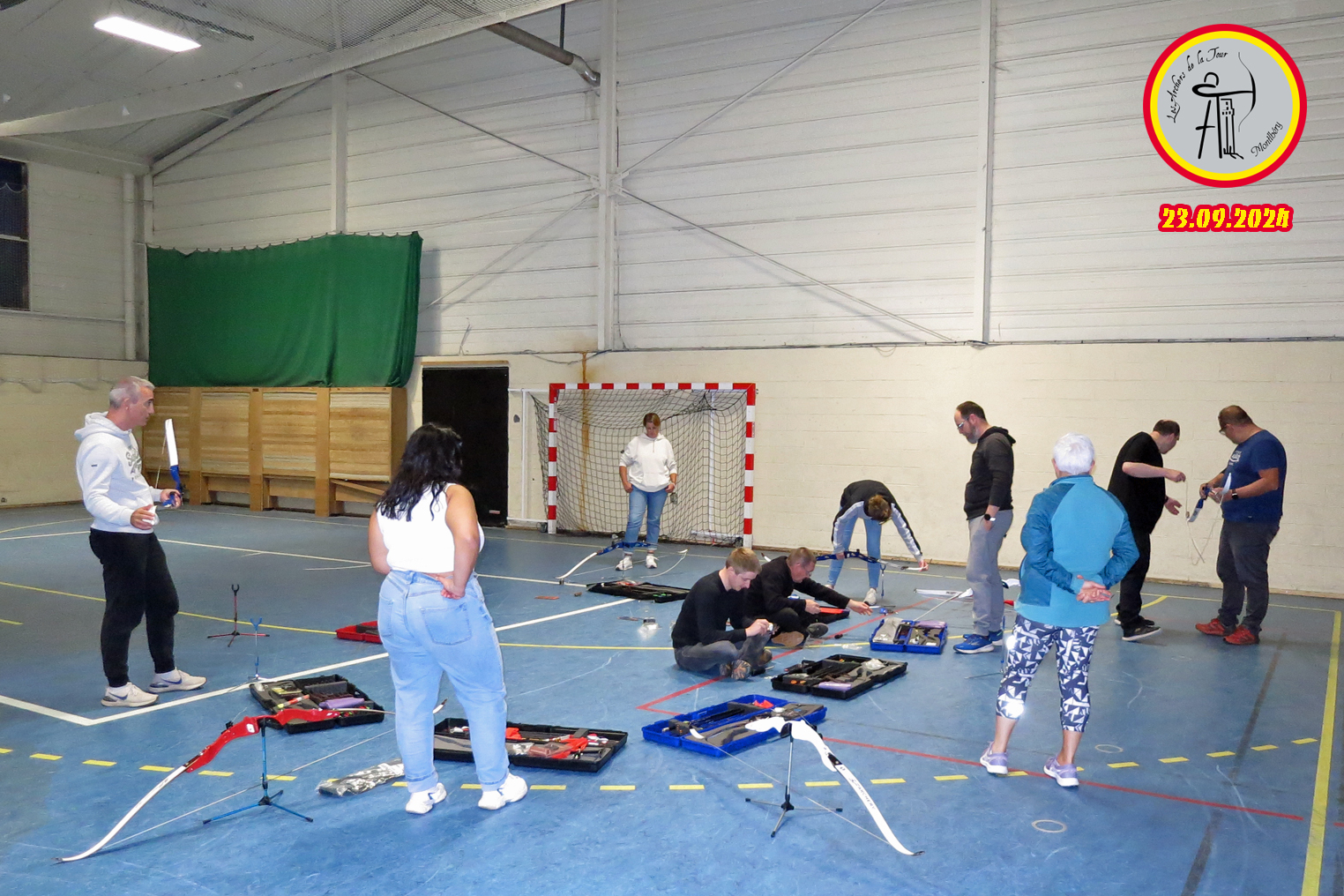 Après l'affectation d'un matériel approprié lors de la permière séance, la deuxième a permis à nos archers adultes débutants d'apprendre - avec l'aide de nos instructeurs... - à monter l'arc et à s'équiper.