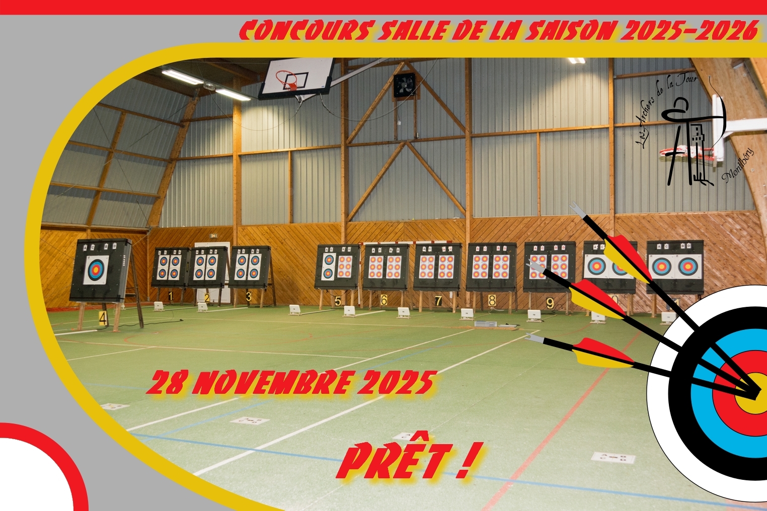 Ce vendredi 28 novembre 2025 les Archers de la Tour ont aménagé le gymnase pour les concours en salle de Tir à 18 m et de Para-Tir à l'Arc à 18 m de ce week-end.