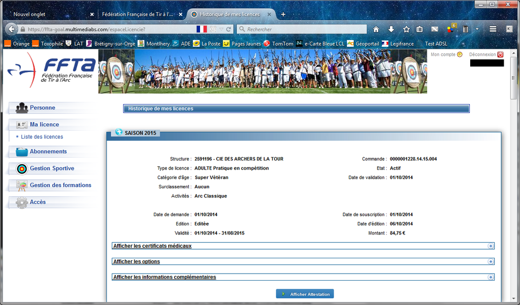 Le document de la FFTA ci-après en fin de page donne les indications nécessaires pour l'accès par chaque licencié à son espace sur l'intranet de la FFTA comme suite de la dématérialisation des licences.