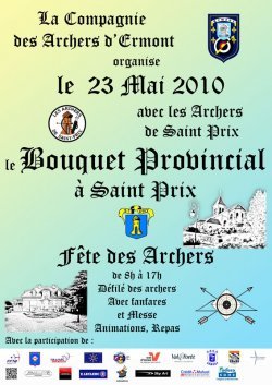 Ce n'est désormais plus le cas, puisque la FFTA a validé la candidature de la Compagnie d'Arc d'Ermont qui organisera, avec l'aide du club des archers de Saint Prix, le Bouquet Provincial de l'année 2010 à Saint-Prix dans le Val d'Oise le dimanche 23 mai prochain.