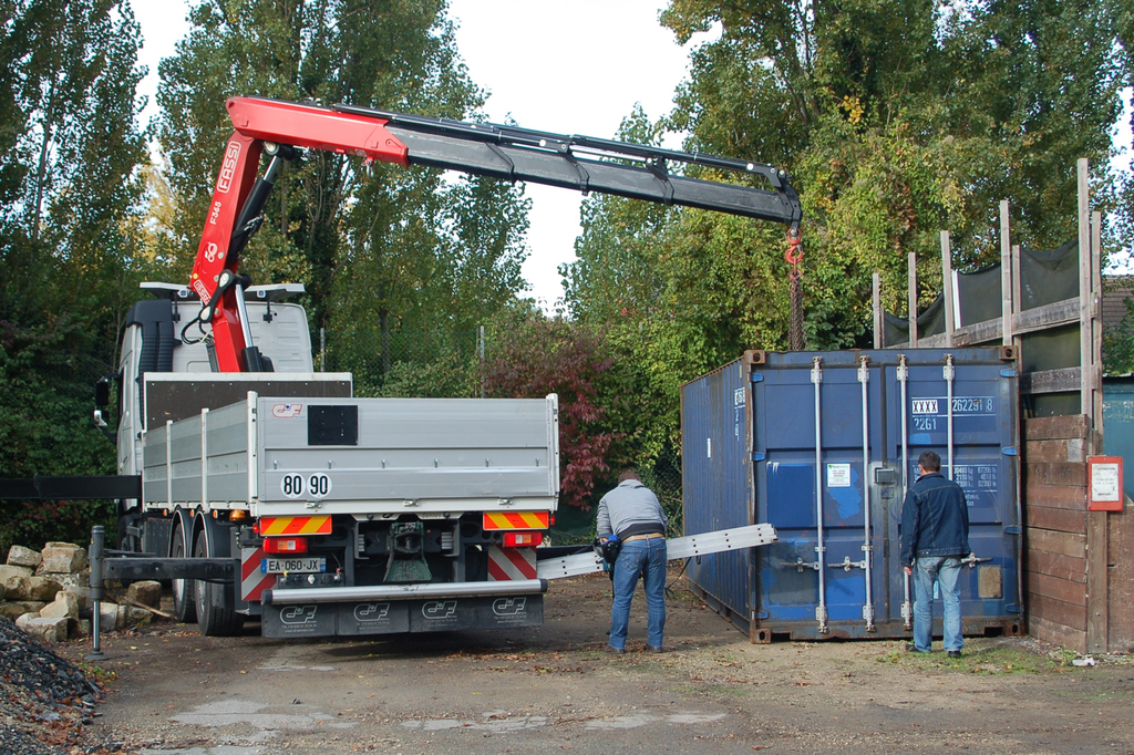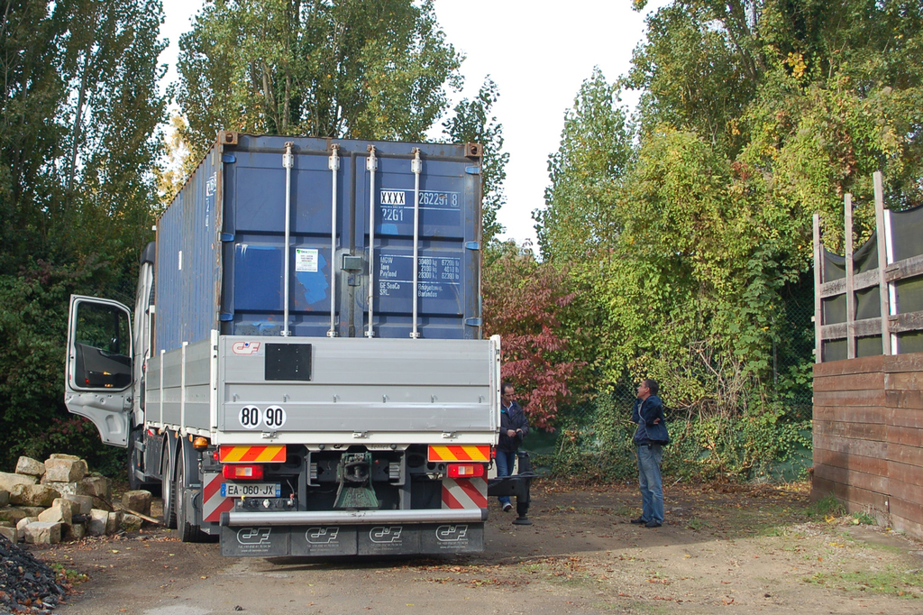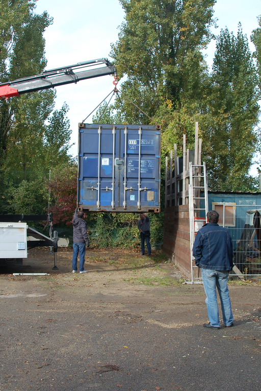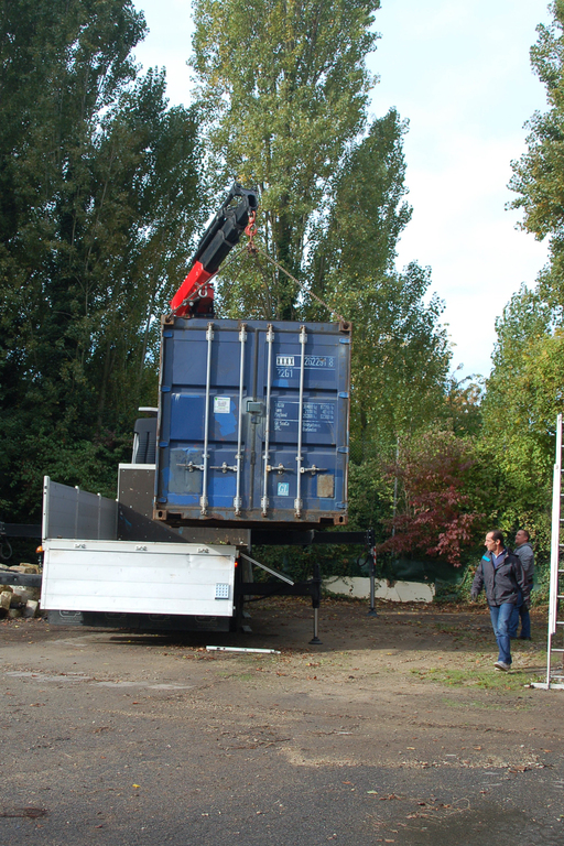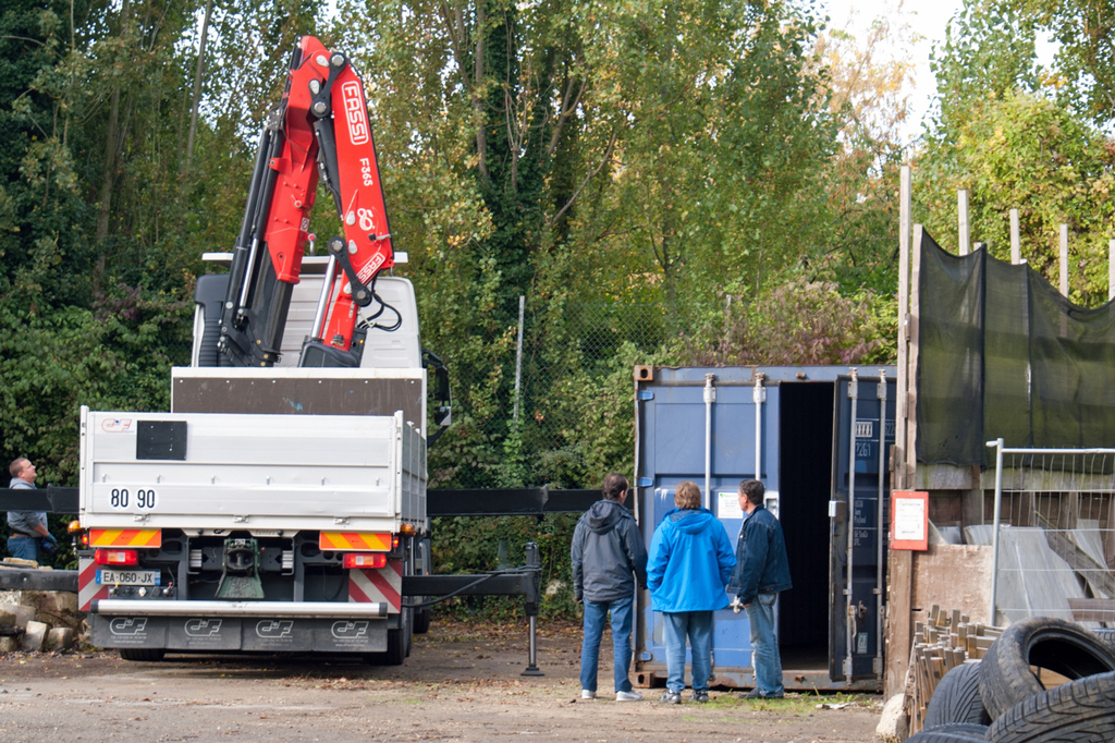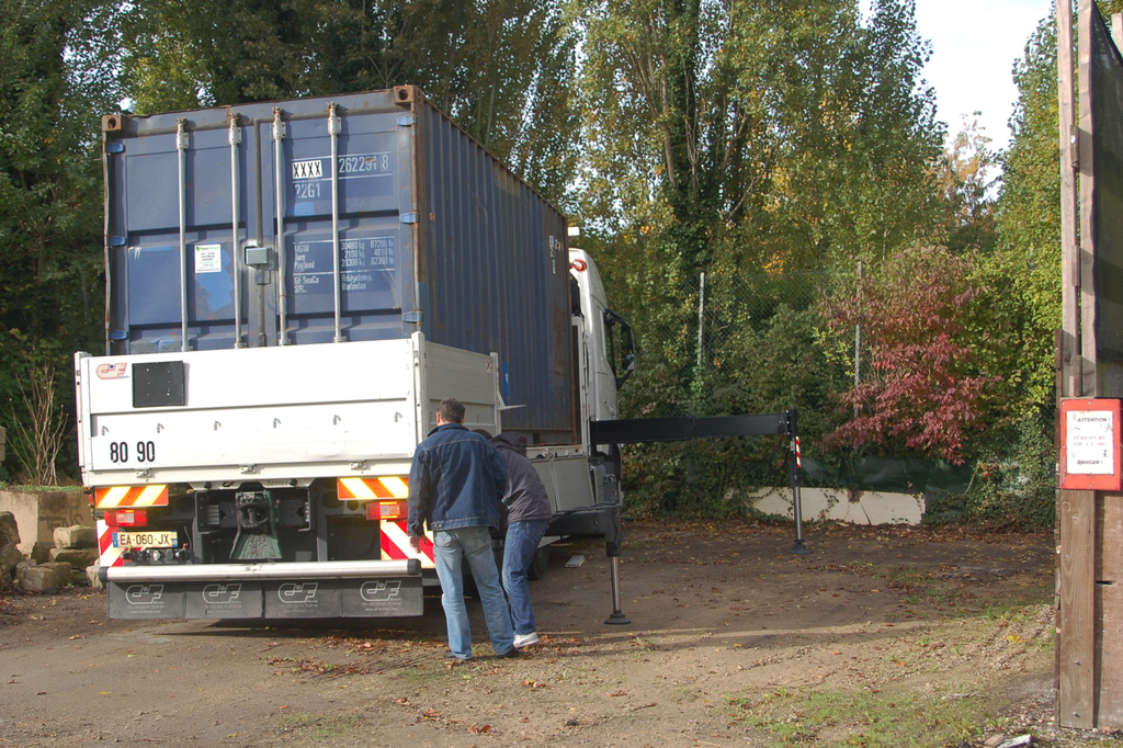 Livraison du container destiné au rangement du matériel sur le terrain extérieur