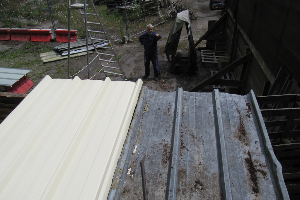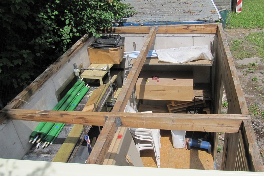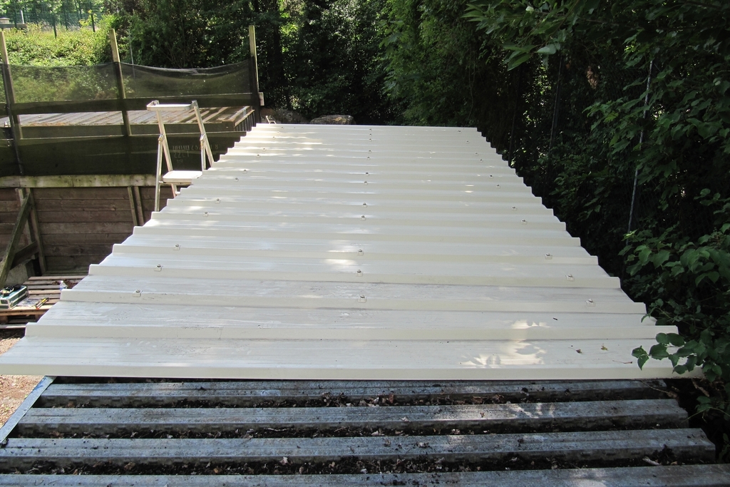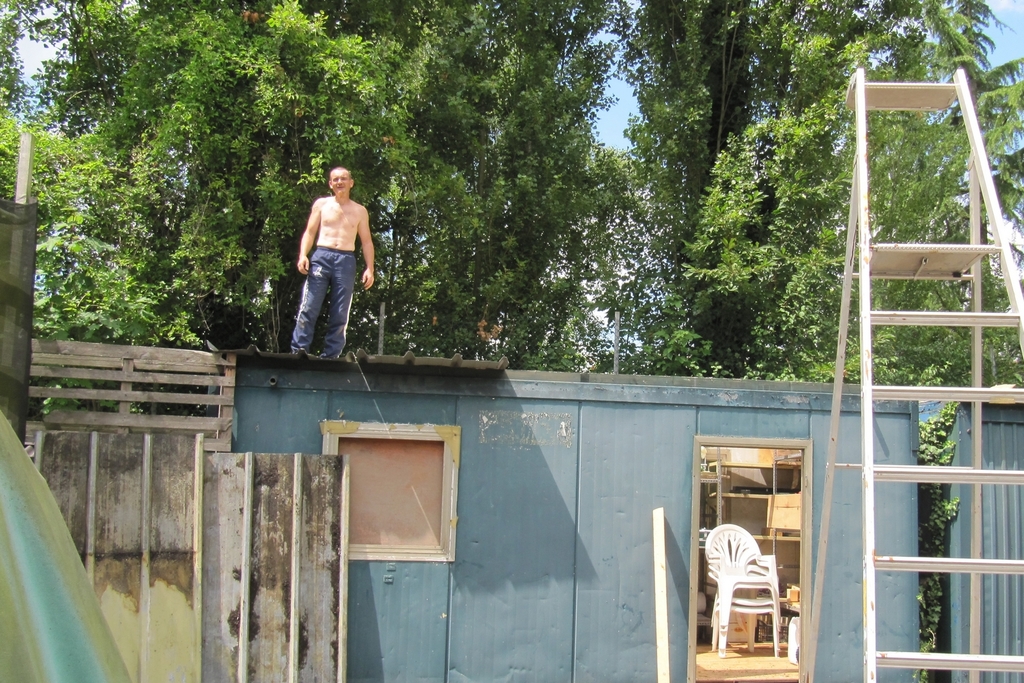 Réfection du toit du conteneur de stockage du matériel et installation de toilettes