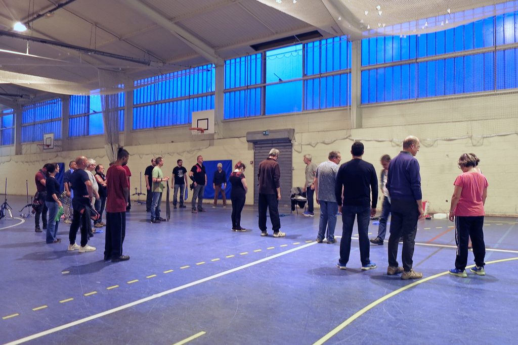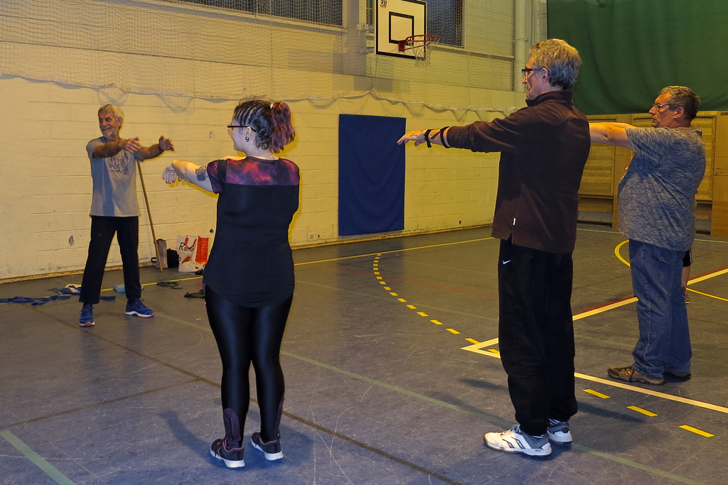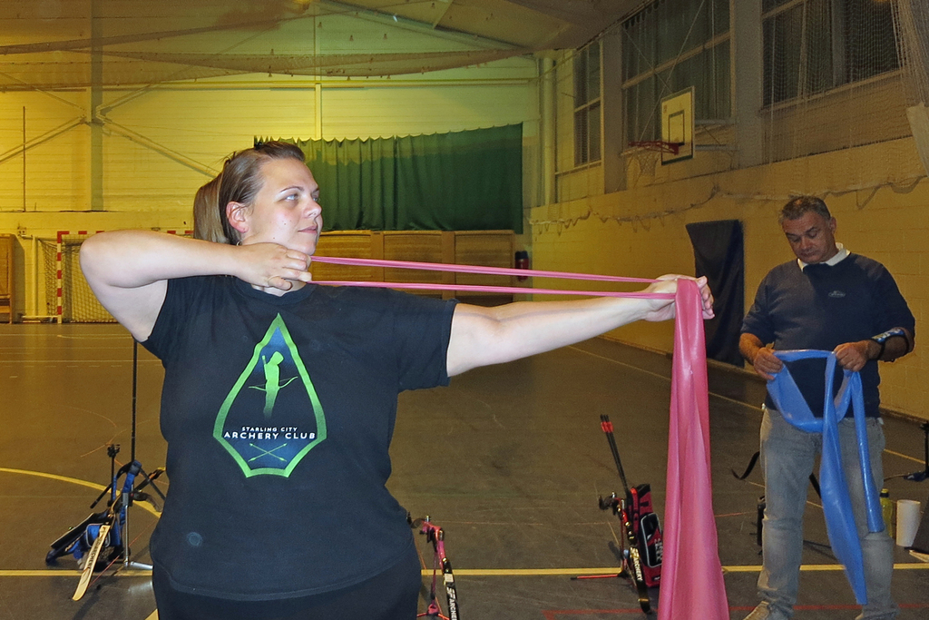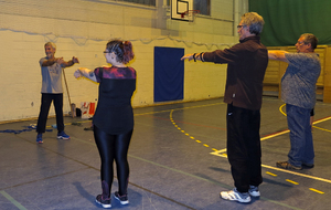 Séance consacrée à la pratique de l'échauffement et de l'étirement pour la pratique du tir à l'arc.