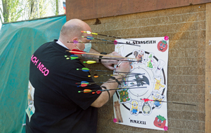 Après-midi sur le terrain consacrée à une assemblée générale extraordinaire, au tir de la saint Sébastien et au tir du Roy Abat-l'Oiseau