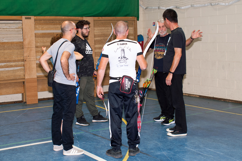 Premier cours pour les nouveaux archers adultes (complément des formalités administratives, préparation et affectation à chacun(e) de son matériel) et reprise des entraînements pour les archers anciens.