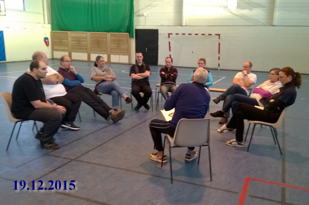 Cest ainsi que ce samedi a eu lieu, organisé par le coach, le débriefing bénéfique de la sortie d'Orsay, comme le montre ce cliché.
